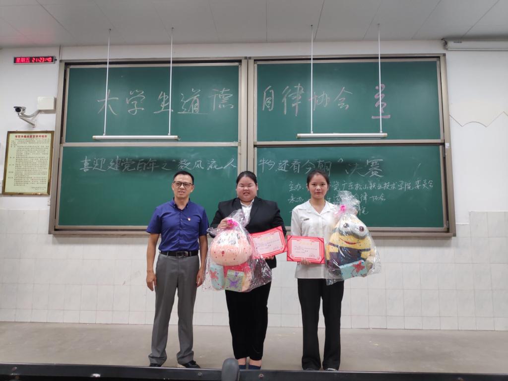 活动中,每位参赛选手都选取自己最崇敬最喜爱的人物进行演说,真情道出对党的崇敬与热爱,展现出新时代大学生良好的精神风貌。最终,来自经济管理学院2020级行政管理2班的姚桂怡同学和电气工程学院应用电子技术1班的潘锦珍同学的演讲激昂慷慨、坚定有力,赢得了在场嘉宾和同学们的一致肯定,获得了比赛的一等奖。