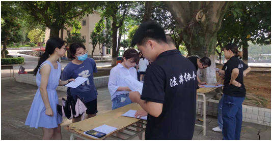 6月20日上午,由马克思主义学院指导的大学生法律协会在新篮球场旁的小树林举行了“喜迎建党百年”之民法典知识竞赛活动,现场气氛活跃,众多学生参与其中。