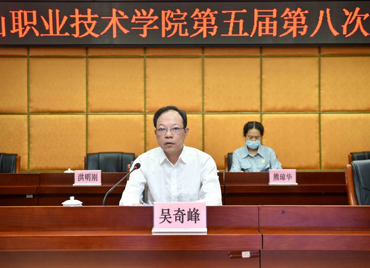 吴奇峰就学校2021年以来的工作向全体与会代表作报告。他指出,在全体教职员工的努力下,学校各项事业在高质量发展进程中取得了一系列成绩,为学校“十四五”开好了局、起好了步。一是聚力高质量发展,内涵建设不断提升;二是落实立德树人根本任务,人才培养成效显著增强;三是立足新起点,学校发展蓝图高点擘画;四是坚持深改革提效能,内部治理能力有效提升;五是主动融入区域经济发展大局,社会服务水平不断提升;六是强化办学条件支撑,服务保障能力有力提升。