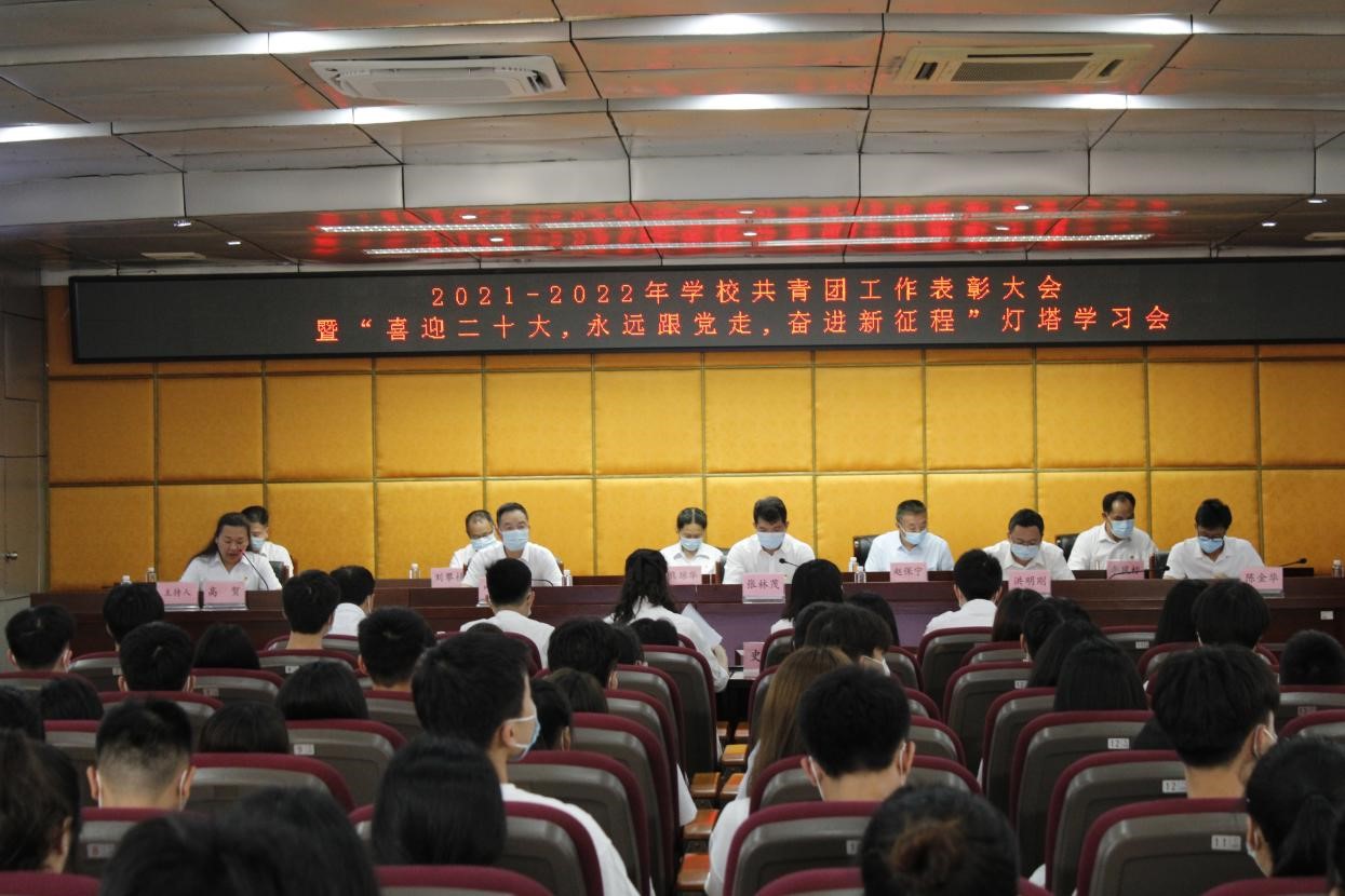 为庆祝中国共产主义青年团成立100周年,表彰先进,树立典型,激励广大团员青年创先争优,开拓创新,5月5日下午,我校2021-2022年度共青团工作表彰大会暨“喜迎二十大、永远跟党走、奋进新征程”灯塔学习会在宽C201举行。学校党委副书记张林茂出席会议并讲话,党政办、组织宣传统战部、学生工作部等部门负责同志,各二级学院党总支(副)书记及全体专(兼)职团干部、团属学生组织代表、团员青年代表等180余人参加会议。大会由校团委书记高贺主持。